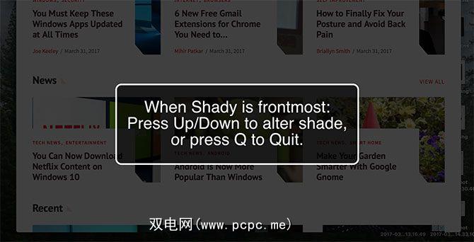 Shady是另一个免费应用程序,尽管在项目主页上可以通过PayPal进行捐赠。就像Nocturne一样,该应用已经有一段时间没有看到更新了,它是为OS X 10.5编写的。不过,它在macOS Sierra上可以正常工作,因此仍然值得您花时间。