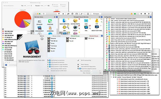 Apple内置的防火墙是Packet Filter,一个强大的防火墙,通常被称为``pf'',并且对于Unix用户是众所周知的。上面概述的默认GUI无法让您访问pf的许多功能,这是Murus的所在。只需10美元,该应用就可以控制入站和出站请求,以及更多其他功能