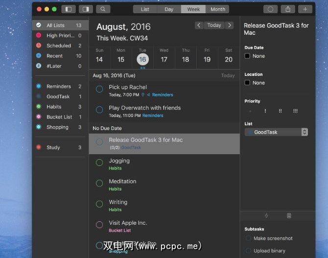 GoodTask 3是一个高级提醒管理器,可以与Apple Calendar和提醒同步。