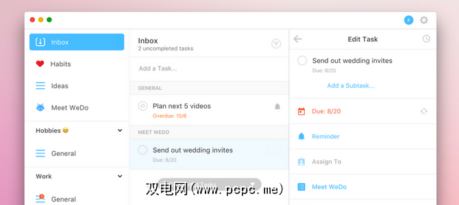 Wunderlist是最著名的任务管理应用程序之一,提供了用于管理提醒的全部功能。