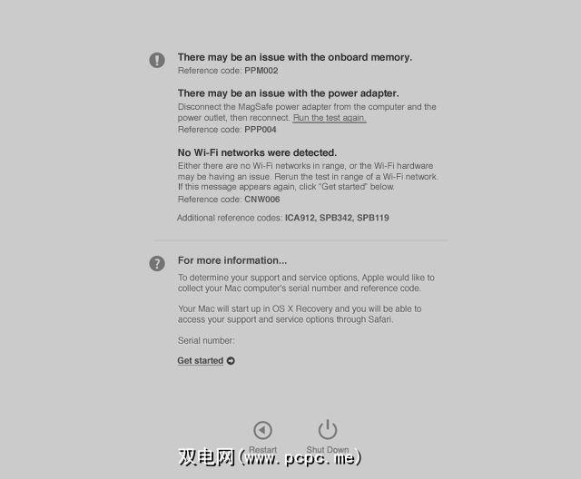 如果您在最新的Mac上使用 Apple Diagnostics (下面的屏幕截图),则该测试将自动完成,因此您无需执行任何操作。您应该记下任何错误代码或其他相关信息,特别是如果您的机器不在保修范围之内,则需要自己进行维修。