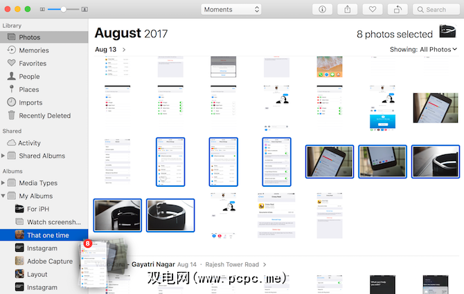 无处不在的侧边栏在您要快速将一部分照片移到特定位置时非常有用。专辑。现在,无论您处于哪个视图,都只需选择照片,然后将其拖放到侧栏中的任何相册中即可。