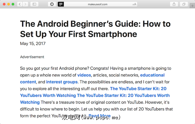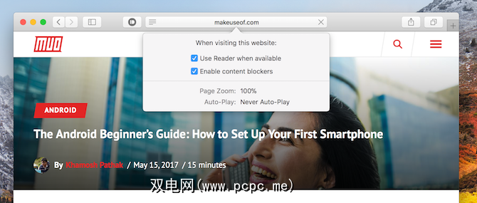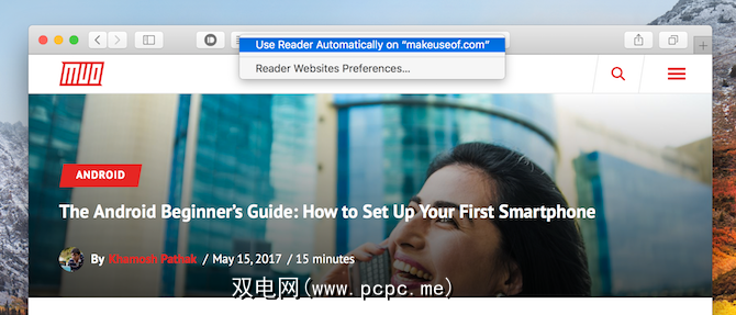 Safari的阅读器模式在High Sierra中得到了很大的更新。现在,您可以告诉Safari始终以“阅读器"模式自动打开来自特定域的网页。新闻网站周围充斥着令人分神的视觉内容。