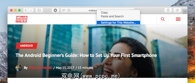 Safari现在可以记住您经常访问的网站的各个设置。右键点击网址栏,然后选择此网站的设置。您会看到一个全新的下拉列表。