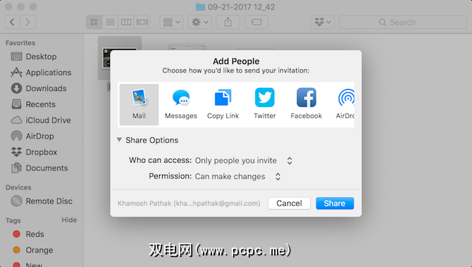 如果您正在寻找Dropbox的云协作替代方案,则可以在新的iCloud驱动器中找到它。如果您想与某人共享文件,只需在iCloud Drive库中右键单击该文件,然后选择添加人员。您可以使用电子邮件地址邀请他们,也可以复制链接。