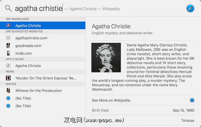Spotlight还与Wikipedia紧密集成。当它在您的设备上找不到任何内容时,它会退回到最相关的Wikipedia条目(通常非常有用)。