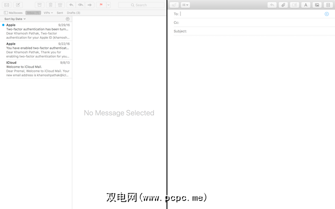如果您在Mac上使用Mail应用,则现在有理由进入全屏模式。在全屏模式下单击邮件应用程序中的撰写按钮时,撰写窗口现在从右侧滑入,邮件进入其自己的分屏模式。