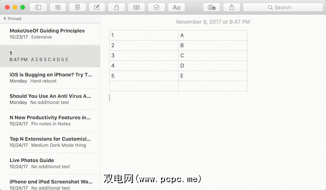 这是新的Notes应用程序中另一个有用的功能。点击顶部的表格图标,注释中将出现一个2 x 2的表格。右键单击小菜单按钮以添加或删除更多行。此功能可以帮助您以表格形式快速排列数据。目前,表格功能不支持任何类型的计算。为此,您仍然需要使用电子表格应用程序。