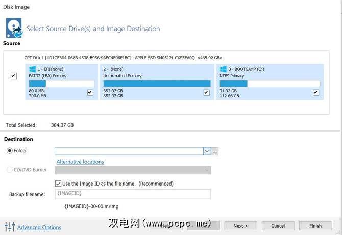在Macrium Reflect Free的免费版本中,您无法备份特定的文件和文件夹。这并不意味着您无法备份它们,只需要备份它们所在的整个硬盘分区。这样会很快耗尽磁盘空间。