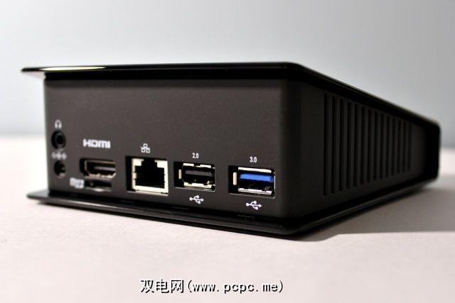 将小型控制台翻转过来将显示可用的端口范围。它有两个USB端口,其中一个是USB 3.0,另一个是2.0品种。有一个HDMI输出端口,一个以太网插孔,电源线端口和一个3.5毫米耳机插孔。一切都紧凑紧凑地封装在小型控制台中,但是每个端口之间都有足够的空间来插入所有电缆。