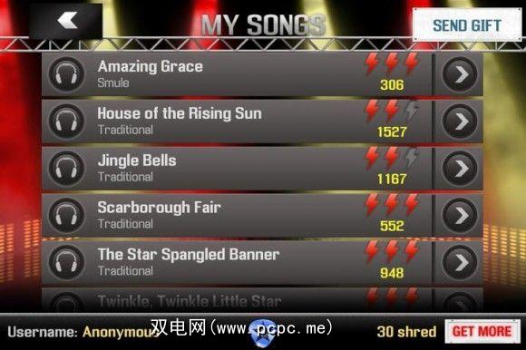 游戏附带五首免费歌曲,可以购买各种数量的称为“切丝"的游戏货币购买更多游戏。您还可以通过在应用程序中完成报价来赚取更多的碎纸片。