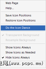 一个有趣的功能是“图标舞",它可能足以吓坏某些人。图标将在桌面上随机移动,直到未选中任务栏菜单中的“做图标舞"选项。不过请注意,“图标舞"会弄乱图标的位置,因此最好先保存它们。