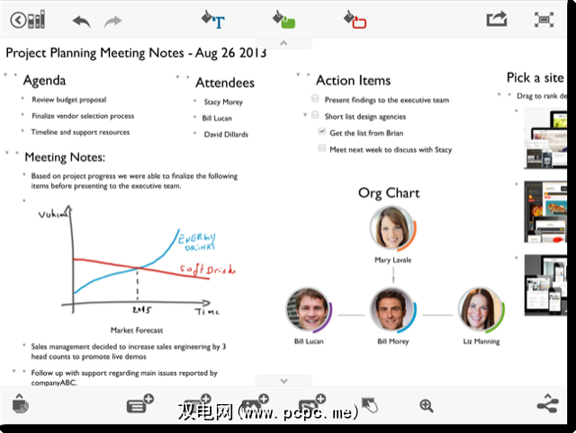 其他oolbar项目用于添加文本框,图像,图形,图表,用于一次选择多个项目的多选工具以及缩放工具。像大多数高级iOS应用一样,您可以通过用两根手指捏合或放大来放大和缩小画布的大小。