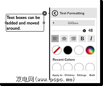 您可能不想使用MagicalPad来写很长的文字。相反,它作为笔记本和项目计划或演示应用程序感觉更有用。例如,您可以添加文本框并将其在画布上移动。关闭键盘后,您可以点击文本框,并使用一组有用的工具来复制文本,更改字体样式和大小,添加填充颜色和边框或一起删除该框。