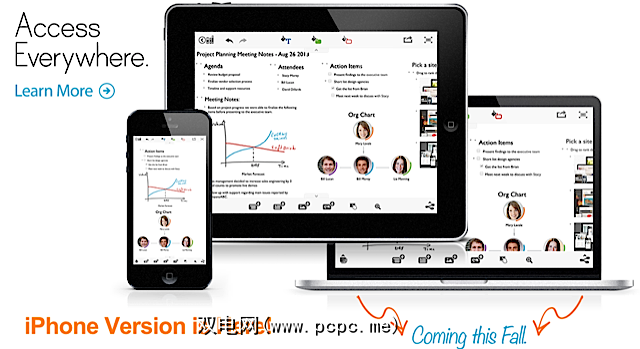 笔记本内容可以通过iCloud在设备之间同步,并以PDF和JPEG格式导出。但是还有更多:您还可以将内容共享到电子邮件,Dropbox,Evernote,Google Drive,Twitter,Facebook,以及设备的相机胶卷。