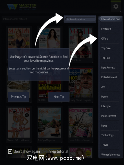 首次启动该应用程序时,通过简短的教程向您介绍如何使用该应用程序的一些基础知识。它为您提供了一些快速提示,供您在应用程序中阅读和查找一些有趣的杂志。