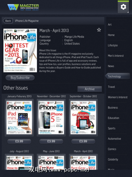 所有杂志在屏幕右侧分为几类。您可以查看排名靠前的免费和付费服务,以查看服务中最好的。您还可以查看小说,男人和女人的兴趣,技术等类别。如果您对某本杂志感兴趣,那么此应用很可能至少有一本或两本可以满足您的兴趣。