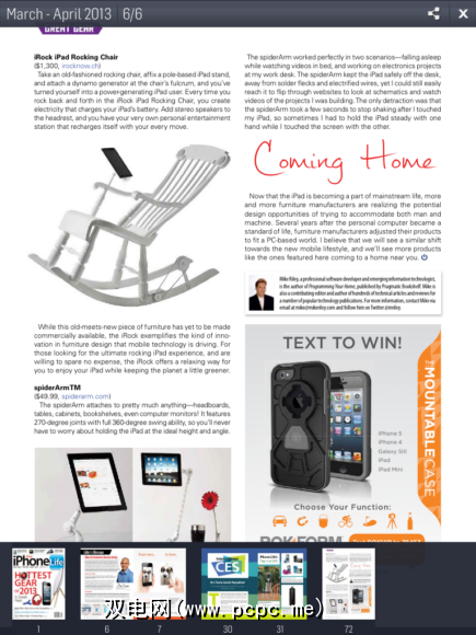查看杂志的工作符合您的预期。您可以按两下进行缩放,双击以进行更快的缩放,然后在屏幕上滑动以查看杂志的不同部分。您还可以从页面的边缘滑动,以移至问题的下一页。