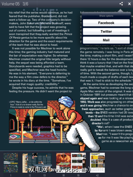在查看杂志时,您还可以点击菜单顶部“ X"旁边的按钮屏幕上可以与您的朋友在社交媒体上共享它。