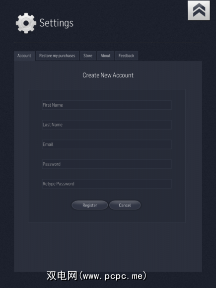要下载杂志,您需要创建一个帐户。为此,请点击屏幕顶部的齿轮图标,您将进入“帐户"标签。您可以将应用程序与Facebook,Twitter链接,也可以手动输入信息以启动和运行帐户。如果您选择使用社交媒体选项来创建帐户,则该应用将代表您共享。因此,如果您选择使用更快的注册方法,请记住这一点。