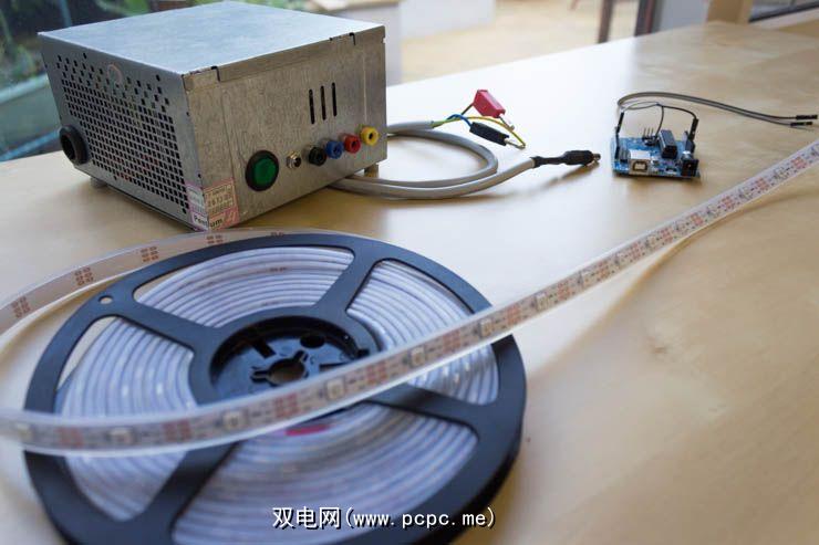 此歧义克隆的主要部分是一串可单独寻址的WS2812B LED。每个LED都有其自己的芯片组,并且单线用于通信。我以52美元的价格从Aliexpress购买了我的矿山,其中包括运费-这是一个5米长的卷轴(150个LED),足以容纳最大的电视,并且每个LED都比Adafruit出售的50美元灯串便宜得多。单独的5V / 10A电源可以以大约10美元的价格购买,但我使用的是旧ATX电源,以前我将其转换为台式电源。如果您有一台大电视,并且由于5米的距离还不够,并且打算连接多个条带,请确保以每个LED 60mA的电流来确定确切的功率要求。