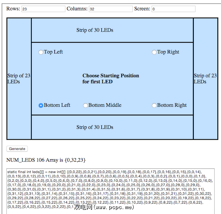 感谢我们令人难以置信的读者之一詹姆斯·兰金(James Rankin)开发了一种有用的在线实用工具为了你。只需输入矩阵的大小和起始位置,然后将生成的矩阵定义复制/粘贴到Adalight Processing应用程序中即可。他还发布了一个处理宽屏电影的快速修复程序,该处理程序代码通常会评估屏幕顶部和底部的黑条,表示没有照明效果。谢谢James!