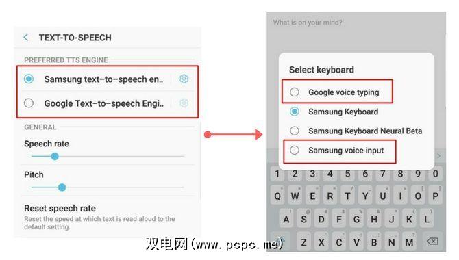 然后,启用或选择您希望手机用作默认文字转语音的选项。您还可以在此处调整语音识别率和音高。