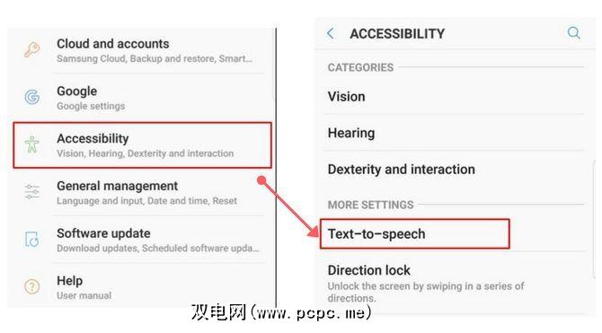 要设置语音命令,请依次转到设置和辅助功能。点击文字转语音设置。