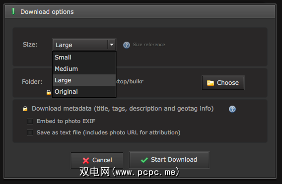 免费版本的Bulkr确实有其局限性。其中之一是您无法访问照片的原始版本–您只能在小,中和大之间进行选择。