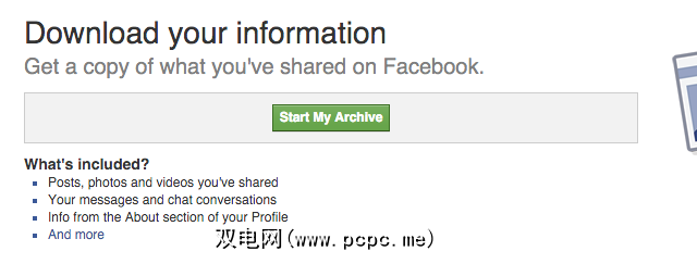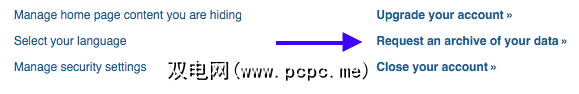登录后,转到设置页面,向下滚动并单击帐户标签。在右侧,您会看到一个链接,上面写着“请求数据存档"