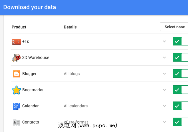 Google却使它变得异常简单。他们允许您通过其Takeout服务从其任何服务中导出数据。只需登录,然后勾选所需的内容,然后选择发送方式(电子邮件链接或下载到Google云端硬盘),然后发送请求即可。 Google说整个过程可能要花几天时间,但以我的经验来看,他们所经历的最长时间是24小时。