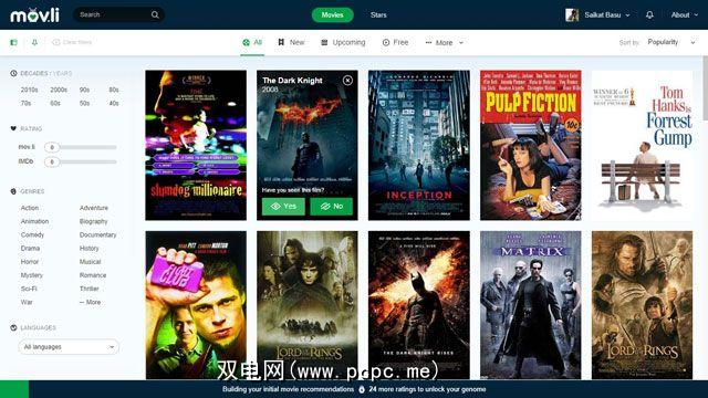 使用彩条可以加快评级和排序步骤 –您只需要打25部电影就可以使Movli知道您喜欢(或讨厌)的电影以及想要观看的电影。继续使用该网站时请继续使用它,并且更多的个人建议会不断建立。