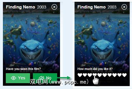 要成为一个好的推荐引擎,Movli需要收集一些情报。将鼠标悬停在电影封面上,然后对电影进行分类和评级,以养活其大脑。基本上,您可以告诉Movli您已经看过的电影以及对它们的看法(通过将其评分为10分)。