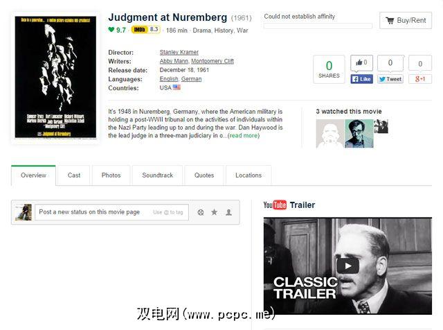 我是电影原声带和电影位置琐事的忠实拥护者,因此这两个各自的概览选项卡已成为收藏夹。大部分时间,由于YouTube,您还可以在那儿播放预告片和原声带。由于许可限制,并非所有音轨都可用。请密切关注类似电影以扩大您的视野-这些建议来自Freebase,而不是IMDb。