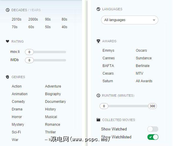 这可能是将您的品味和心情与夜晚娱乐相匹配的最好,最快的方法。想念70年代吗?尝试 Decades 或 Years 过滤器。想看最好的独立电影吗?单击“奖项"下的“圣丹斯"。
