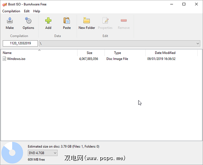 要创建可启动DVD,请打开Burnaware并单击刻录ISO 。点击浏览,然后找到您的Windows ISO文件。插入DVD并单击刻录。