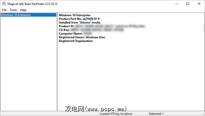 如果丢失了产品密钥,可以通过一些方法再次找到它。 Magical Jelly Bean KeyFinder(魔术果冻豆密钥查找器)有一个免费版本,将显示如上所示的CD密钥。