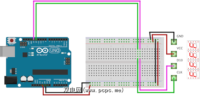 连接信号线(紫色,如图所示)连接到数字引脚9。