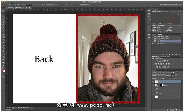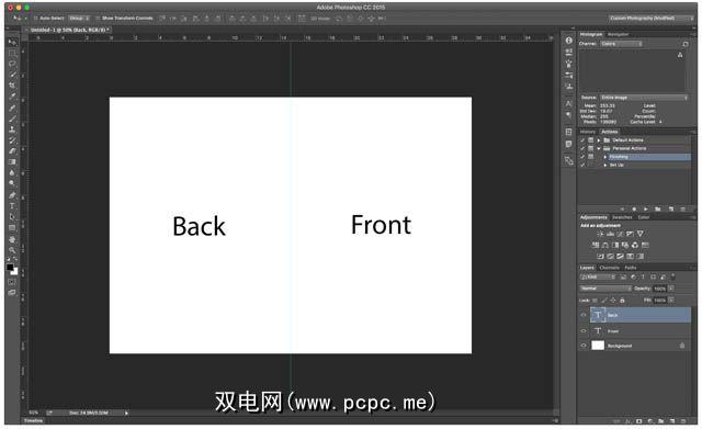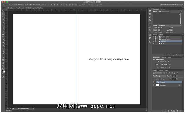 对于本文,我使用的是双面卡的非常简单的模板。打开模板或创建一个新的6“ x4" Photoshop文档开始。