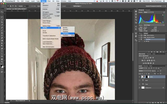 现在,我们选择了选择的内部。我们要选择外观。从选择菜单中,选择 Inverse 即可。不过,这样做后,您会注意到现在已经选择了卡片的背面。若要在选择边框区域的同时取消选择卡片的背面,请在按住Alt或Option键的同时使用选取框工具。