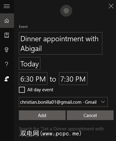 您还可以通过询问我今天要做什么?或我什么时候拥有,要求Cortana提醒您每天的活动。与阿比盖尔共进晚餐? 如果您像我一样健忘,还可以通过提示在5:00 PM提醒我与阿比盖尔的晚餐约会,随时提醒Cortana提醒您上述活动,因此,您有足够的时间来完成所需的工作。