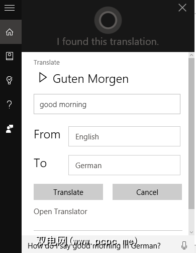 Cortana还具有内置的翻译器功能。要求她每天一次用其他语言翻译简单的单词和短语,甚至可能增加您的双语词汇。只需问Cortana 我怎么说德语早安? ,她不仅会为您提供翻译,还会为您发音。