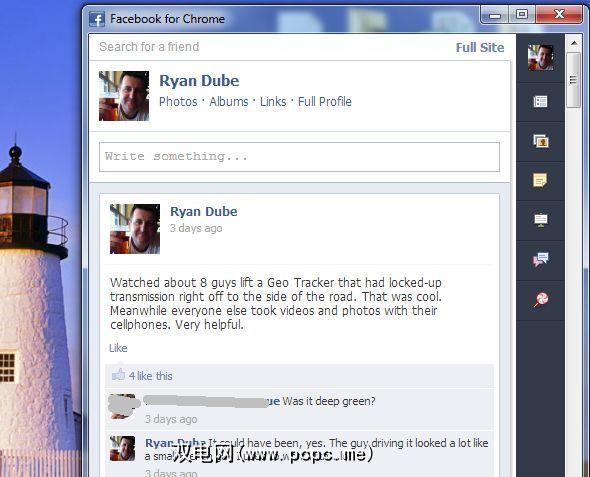 右侧的每个小图标都可以访问您访问该网站时要浏览的所有Facebook区域。 。您可以获得更新,最新通知,并且可以根据需要发布更新。这样做的好处是您不会去Facebook本身,因此您真的不会分心或想呆在那里,不会比检查更新和通知所需的时间更长。