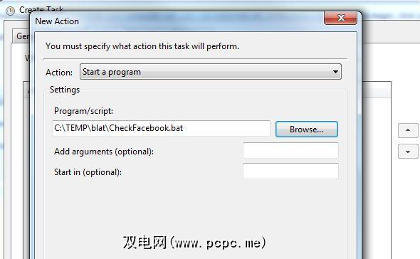 这两个BAT文件都应都在安装Blat应用程序的Blat文件夹中。创建完这些文件后,您可以创建计划任务以运行脚本每隔几个小时检查一次Facebook。例如,您可以创建一个新的计划任务,全天每4个小时触发一次,并每天进行一次调度。