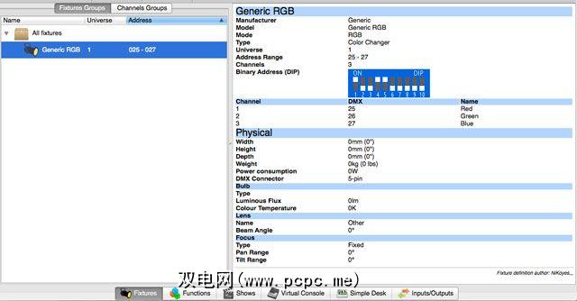 固定装置是DMX控制的设备的行业术语–灯光,烟雾机,激光器等。单个灯具包含1到512之间的DMX地址,并将使用1个或多个通道,具体取决于设备的功能。吸烟机只能使用一个通道进行打开或关闭;一个摇头灯可能有20个,可以控制强度,颜色,光束形状,遮光罩,频闪灯……您就明白了。