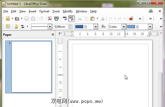 下载并启动LibreOffice Draw之后,您的文档将为空白。您需要使用“绘图工具栏"在页面上放置形状和文本,并且可能会在屏幕底部找到它(尽管您可以将其停靠在您喜欢的位置)。