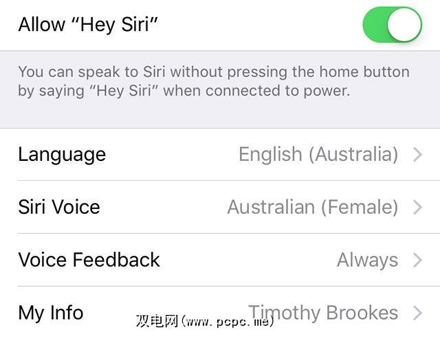 您还可以更改一些基本设置在这里,例如语言和本地化,Siri的声音以及您是否希望Siri在语音反馈选项下与您回覆。您还应该确保在我的信息下选择了正确的联系人。