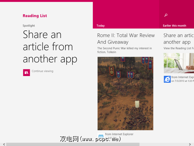 Windows 8.1包括一个新的Reading List应用程序,该应用程序与Internet Explorer集成在一起,允许您保存文章以供以后阅读。就像Pocket一样。