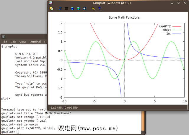 Gnuplot还可以让您以2D和3D形式绘制函数图。这是一个CLI工具(您可以在终端窗口中向其说明),可以在单独的窗口中或以多种受支持的文件格式(包括SVG,PDF,PostScript,DXF,PNG,JPG和甚至是动画GIF)之一输出图形。 Gnuplot提供了详尽的文档和用法示例,因此您入门时不会遇到任何麻烦。