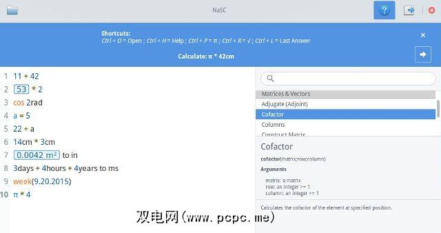 NaSC最初是为基本OS开发的,在许多方面类似于Numi和Soulver for OSX。界面简单而整洁,但是其显着特点是它采用了数学表示法。 NaSC可以解释自然语言表达式,您可以键入数学问题,就像将它们写在笔记本中一样。它支持单位转换,并通过其内容丰富的侧边栏帮助您了解有关数学的更多信息。